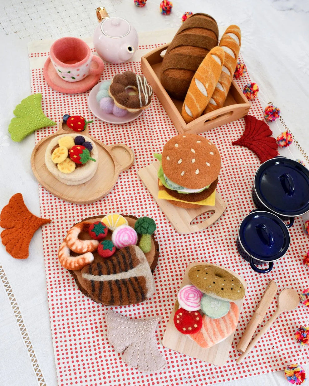 From felt burgers and mini ice creams to farm animals, dragon toys and hanging woodland animals, our toys are designed to inspire endless open-ended play.