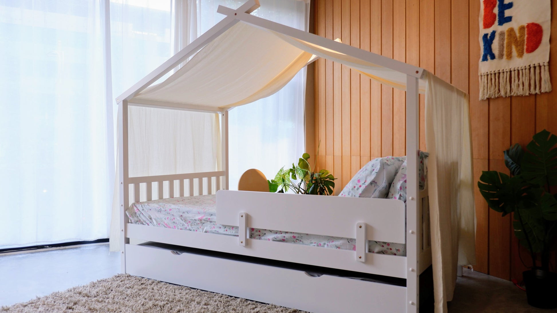 Canopy Addition: Pair the Neo Cottage Bed with a canopy (*sold separately)to create a snug, inviting space for your child. Whether it’s for reading, playing, or sleeping, the added canopy enhances the bed’s charm and provides a sense of security and coziness.
