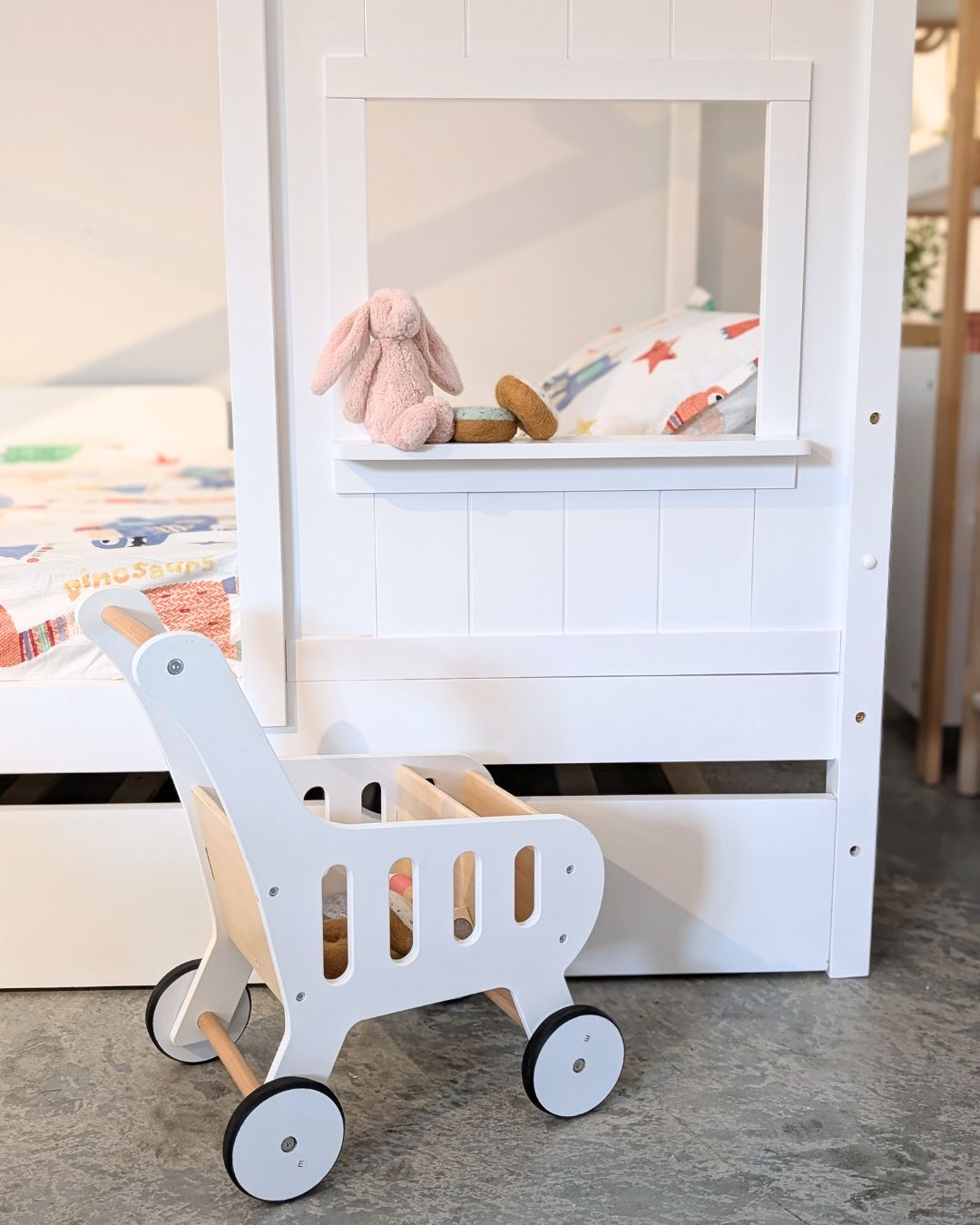 Made from solid rubberwood and child-safe finishes, the Neo Cottage + Cabin set is designed to grow with your child from toddler years into early primary age.