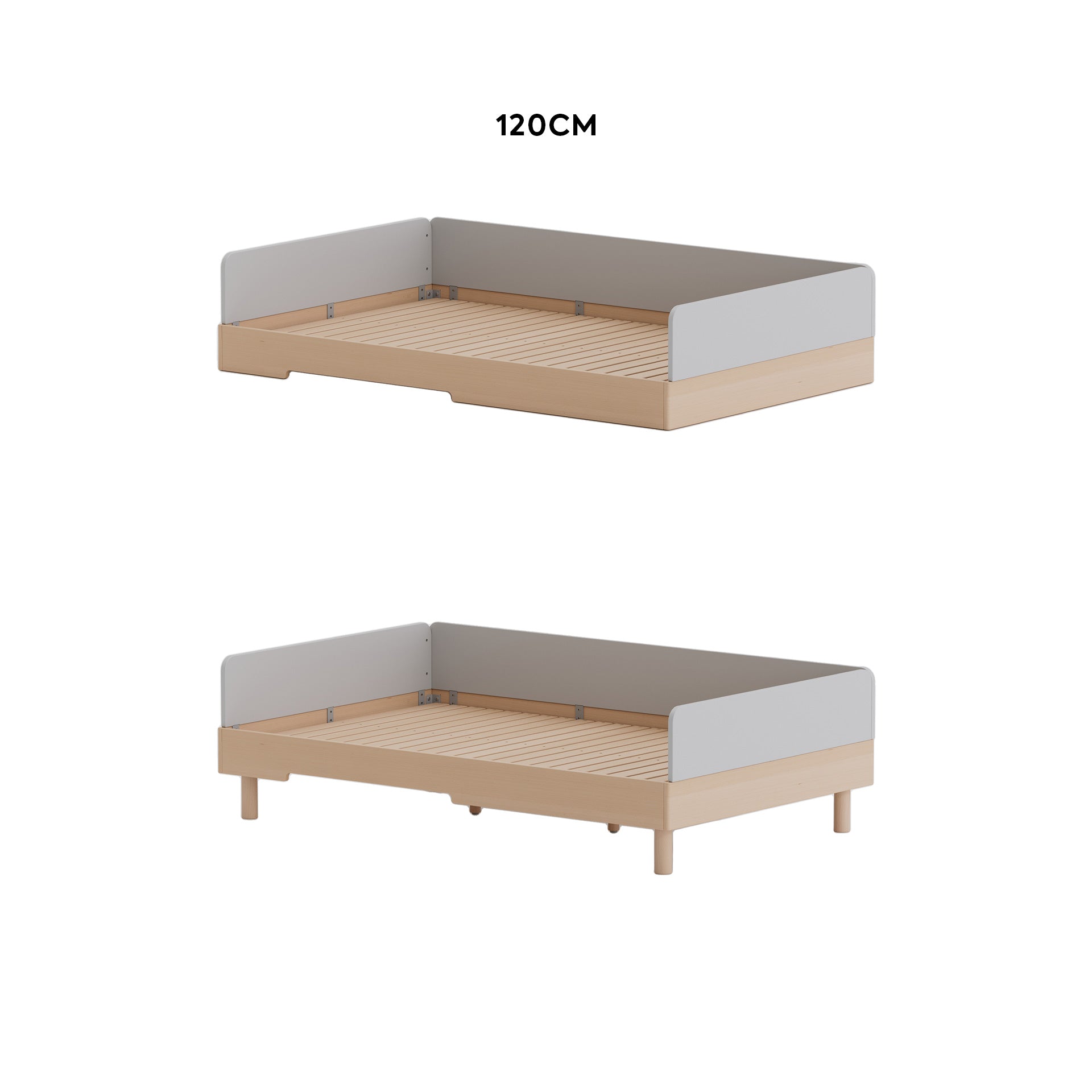 Product size (cm): 205L × 125W × 42.8H | Recommended mattress height: 8–12cm | Recommended mattress size: 200L × 120W