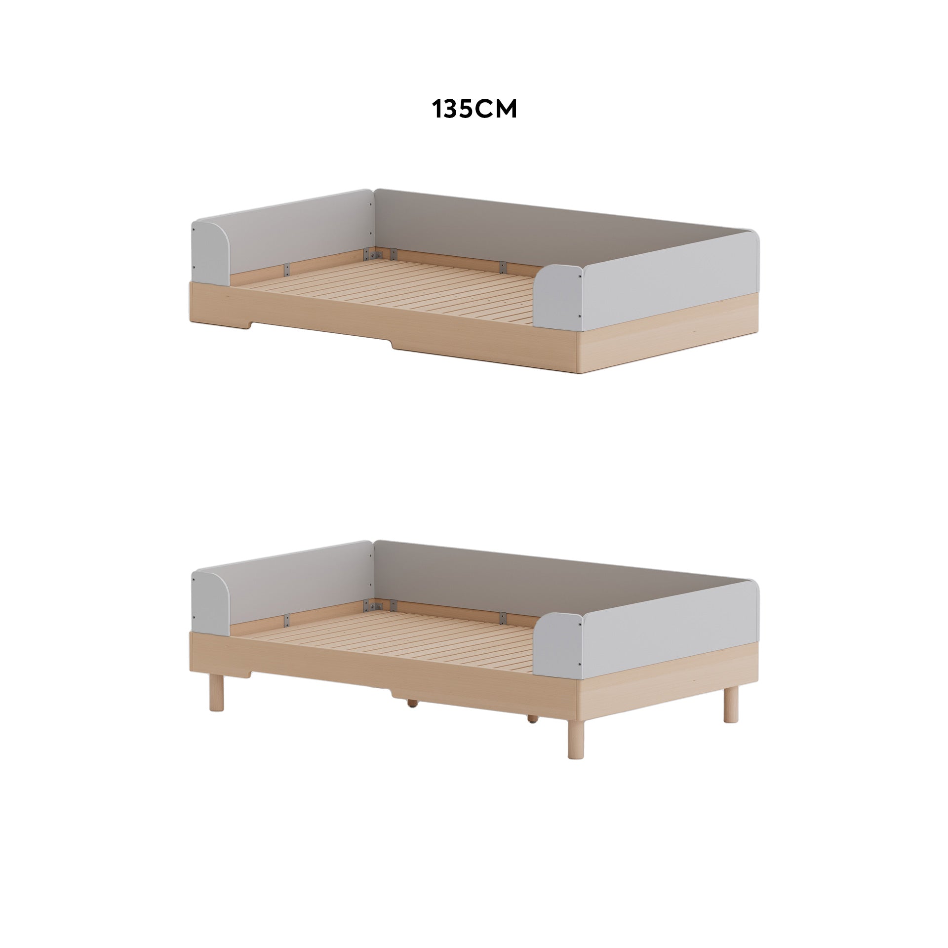Modular design for growth: This modular design adapts to your growing family's needs. With optional accessories, the bed transforms from a low-level floor bed to a standard elevated bed suitable for youths, ensuring long-lasting comfort and independence throughout your child's development. Additional modular accessories can also be added for storage, creating a fully functional sleep and play space.